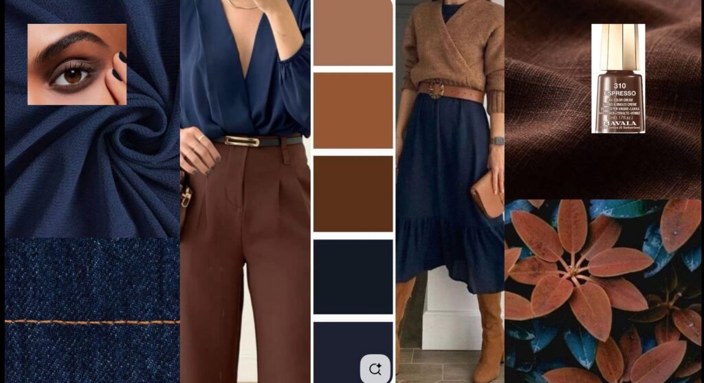 Du kan ha samma färg på över- och underkropp eller olika färger – bara de tillhör färgtemat. Det går också bra att mixa färgerna och exempelvis ha en brun kavaj på blå topp.